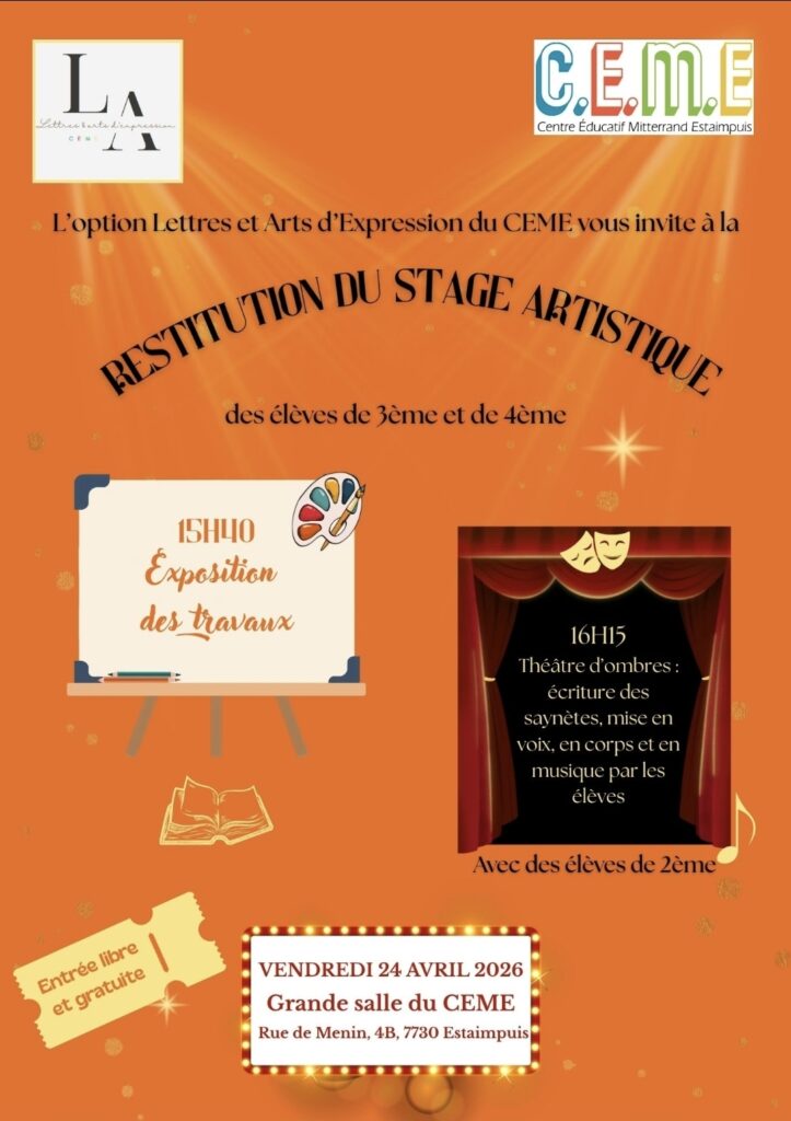 à la restitution du stage artistique des élèves de 3ème et 4ème !